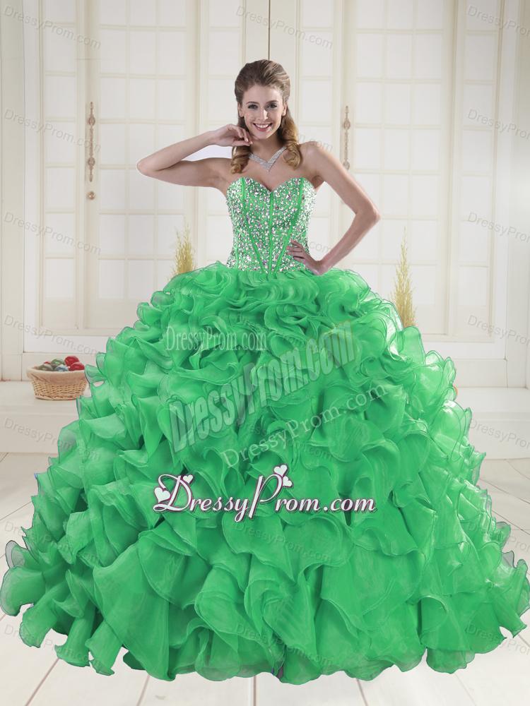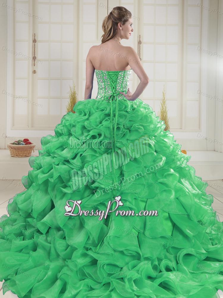 Neckline : SweetheartShown Color : GreenSilhouette : Ball GownsSleeve Length : sleevelessHemline : floor lengthBack Detail : Lace upFabric : OrganzaEmbellishment : Beading,RufflesOccasion : Prom,Formal Evening,Graduation,Military Ball,Sweet 16,QuinceaneraSeason : Spring,Summer,Fall,Winter