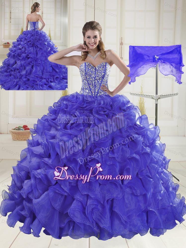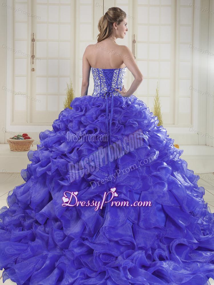 Neckline : SweetheartShown Color : Royal BlueSilhouette : Ball GownsSleeve Length : sleevelessHemline : floor lengthBack Detail : Lace upFabric : OrganzaEmbellishment : Beading,RufflesOccasion : Prom,Formal Evening,Graduation,Military Ball,Sweet 16,QuinceaneraSeason : Spring,Summer,Fall,Winter