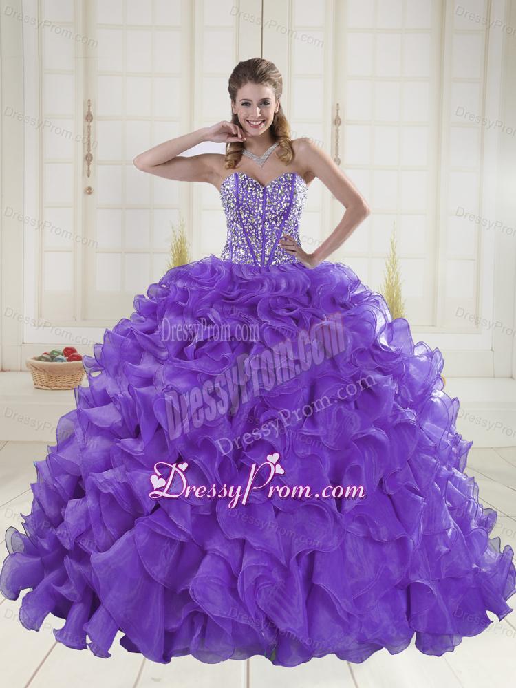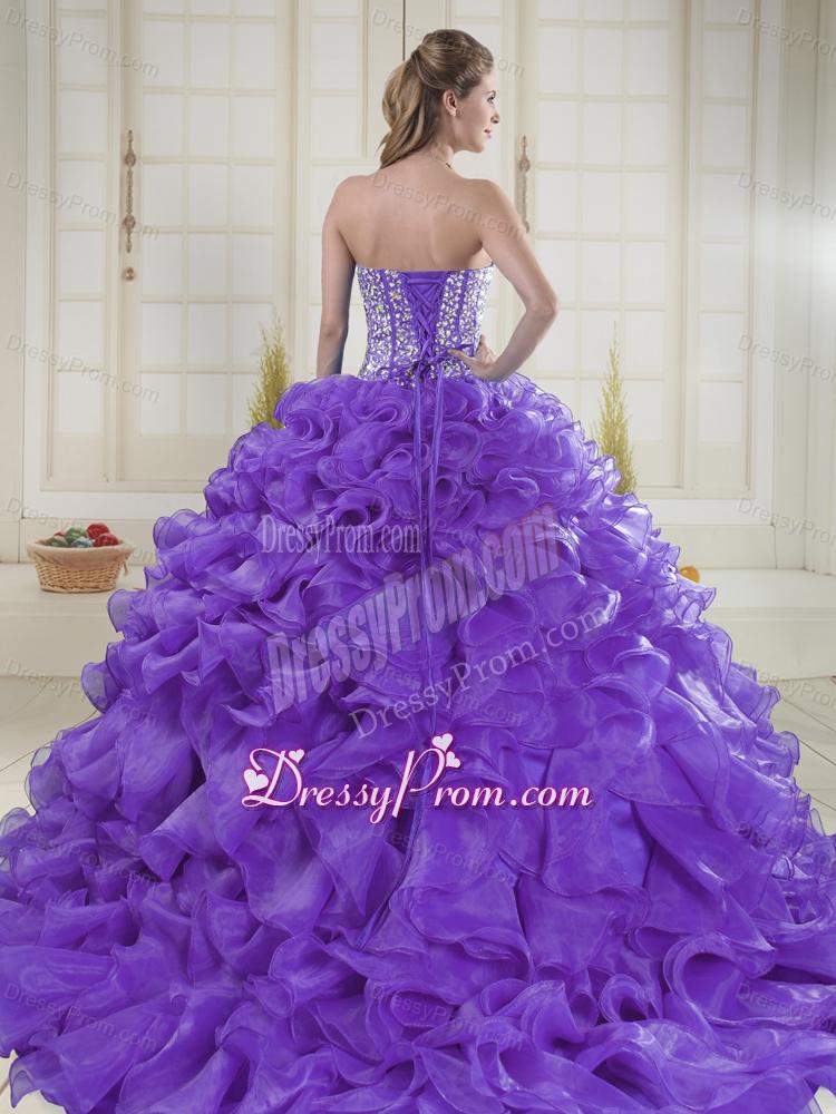 Neckline : SweetheartShown Color : PurpleSilhouette : Ball GownsSleeve Length : sleevelessHemline : floor lengthBack Detail : Lace upFabric : OrganzaEmbellishment : Beading,RufflesOccasion : Prom,Formal Evening,Graduation,8th Grade,Military Ball,Sweet 16,QuinceaneraSeason : Spring,Summer,Fall,Winter