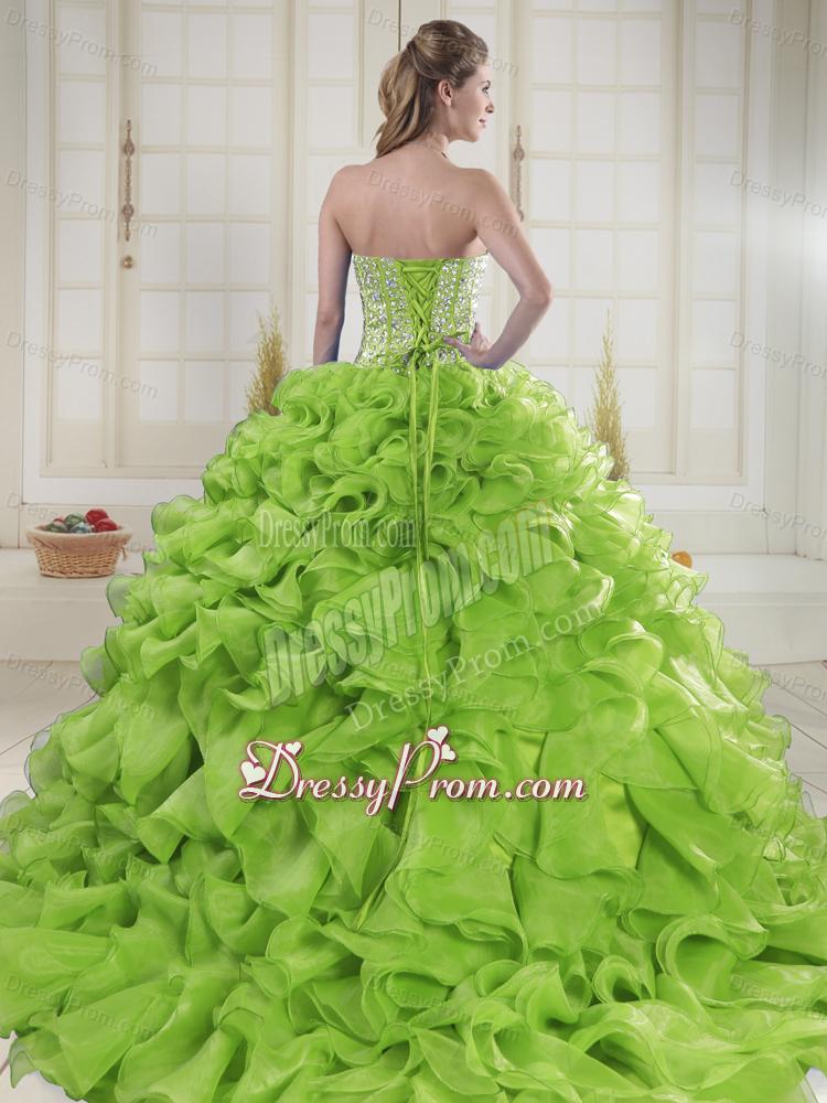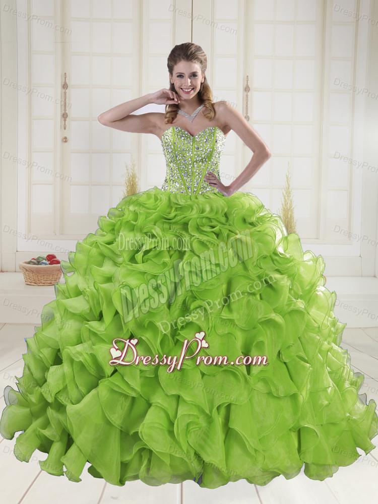 Neckline : SweetheartShown Color : Yellow GreenSilhouette : Ball GownsSleeve Length : sleevelessHemline : floor lengthBack Detail : Lace upFabric : OrganzaEmbellishment : Beading,RufflesOccasion : Prom,Formal Evening,Graduation,Military Ball,Sweet 16,QuinceaneraSeason : Spring,Summer,Fall,Winter