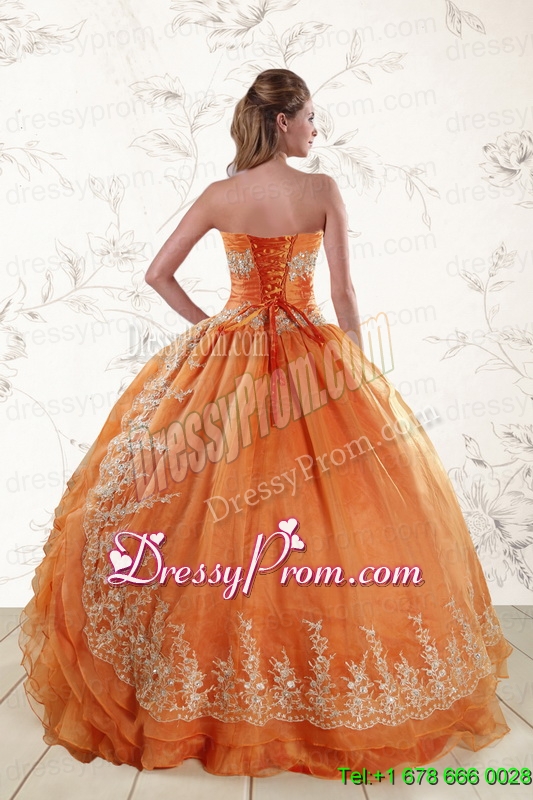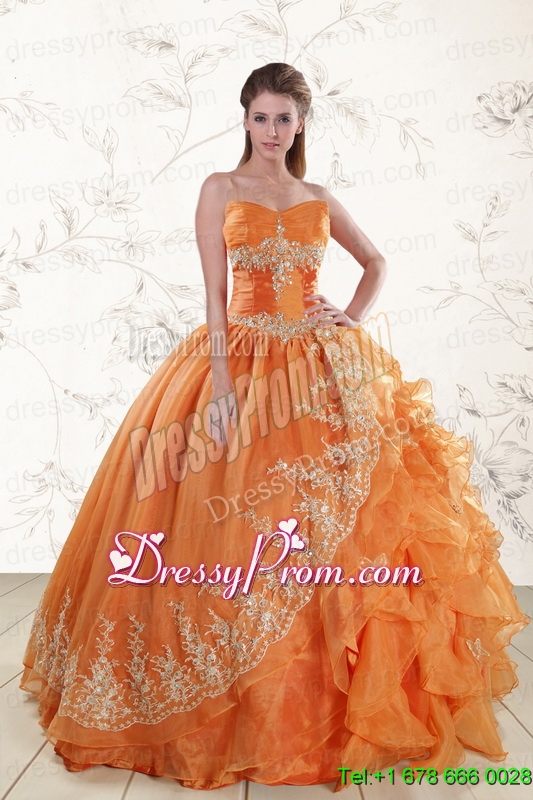 Neckline : StraplessShown Color : OrangeSilhouette : Ball GownsSleeve Length : sleevelessHemline : floor lengthBack Detail : Lace upFabric : OrganzaEmbellishment : Appliques,RufflesOccasion : Military Ball,Sweet 16,QuinceaneraSeason : Spring,Summer,Fall,Winter
