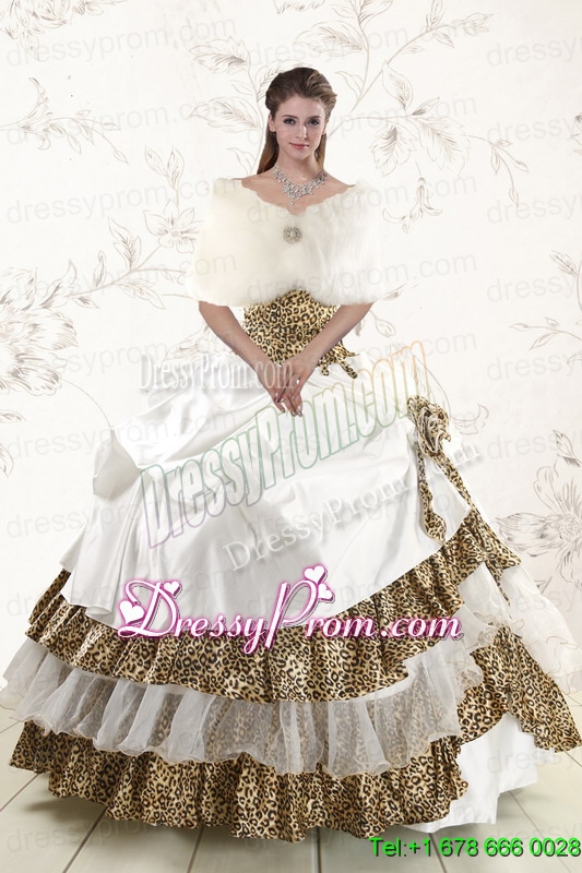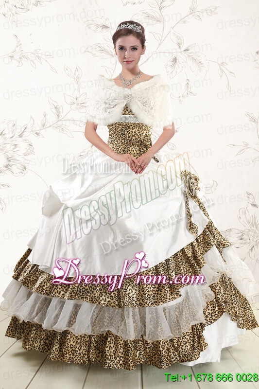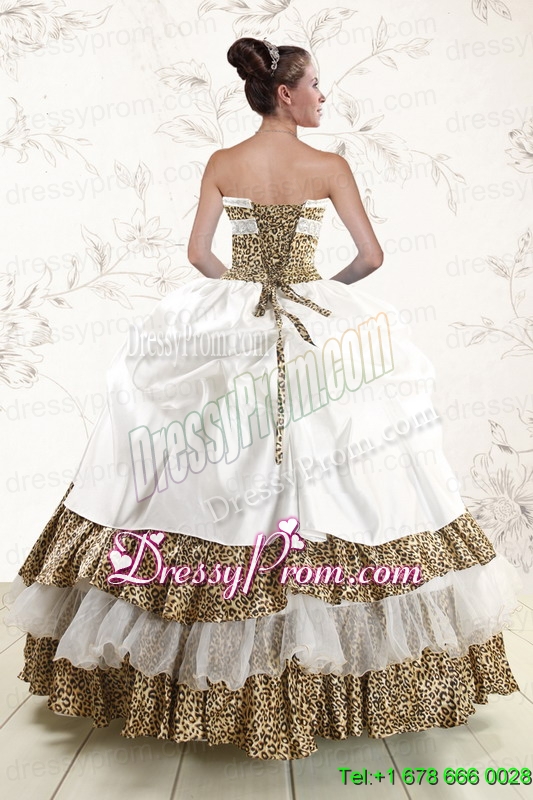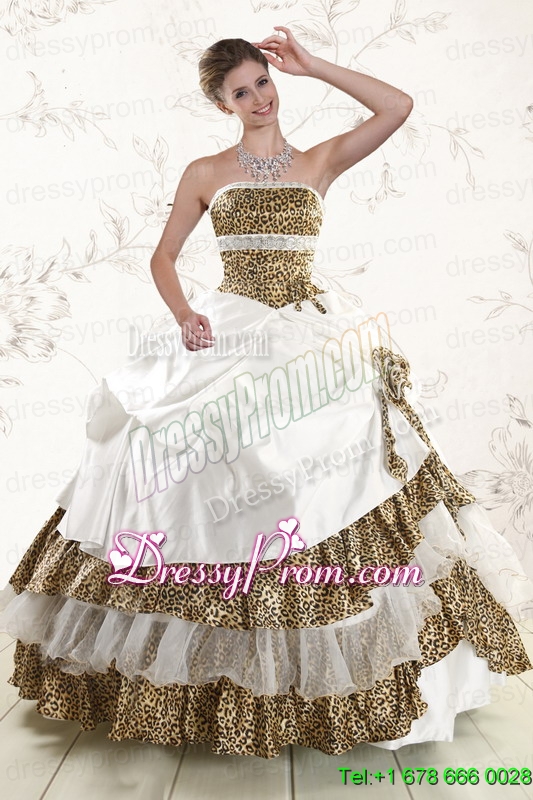 2015 Unique Strapless Leopard Quinceanera Dresses with Hand Made Flower