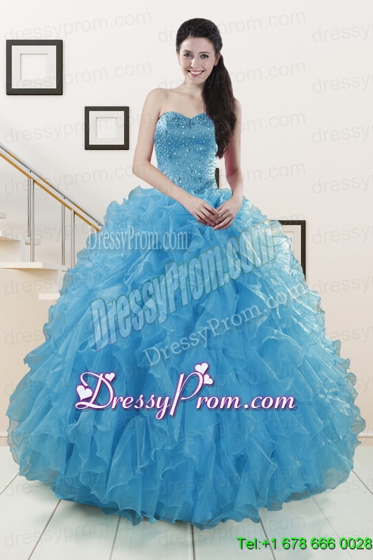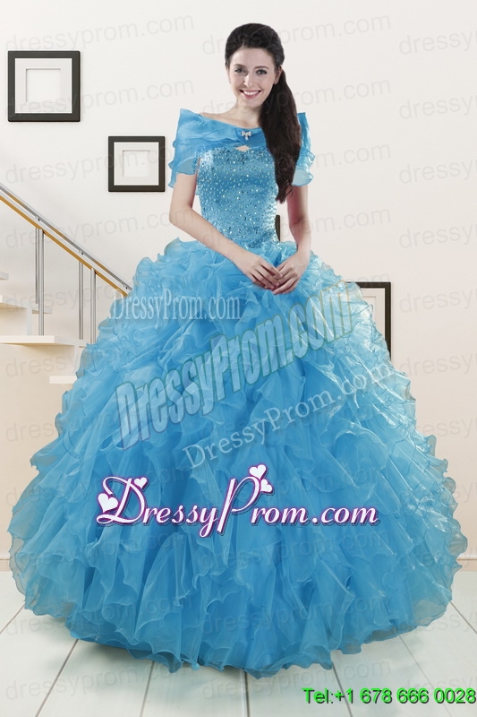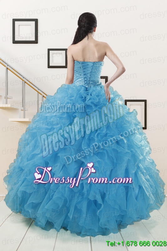 Hot Sell Blue Quinceanera Dresses With Beading and Ruffles
