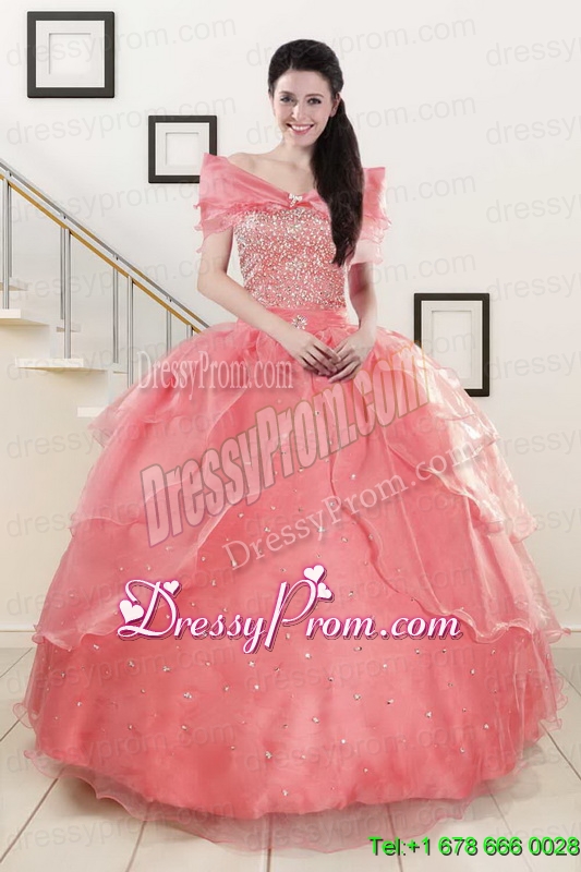 Neckline : SweetheartShown Color : Watermelon RedSilhouette : Ball GownsSleeve Length : sleevelessHemline : floor lengthBack Detail : Lace upFabric : OrganzaEmbellishment : BeadingOccasion : Military Ball,Sweet 16,QuinceaneraSeason : Spring,Summer,Fall,Winter