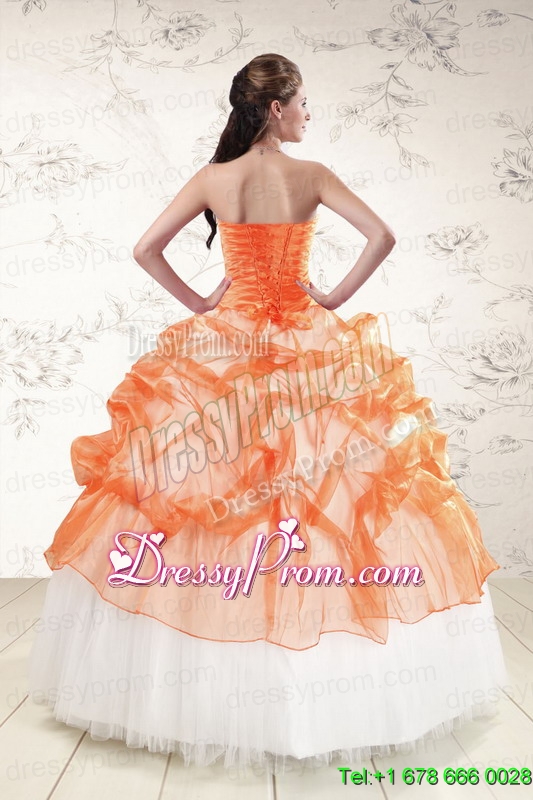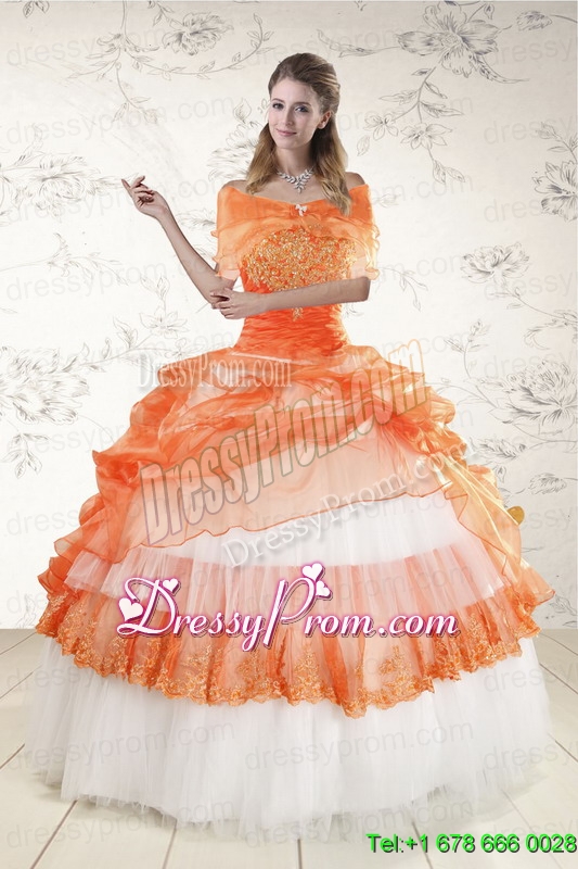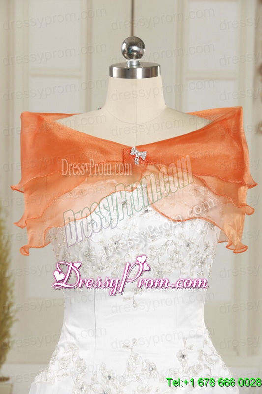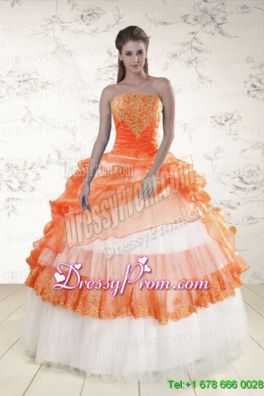 Neckline : StraplessShown Color : White,OrangeSilhouette : Ball GownsSleeve Length : sleevelessHemline : floor lengthBack Detail : Lace upFabric : OrganzaEmbellishment : Beading,AppliquesOccasion : Military Ball,Sweet 16,QuinceaneraSeason : Spring,Summer,Fall,Winter