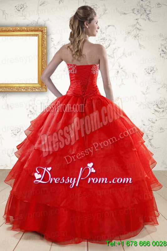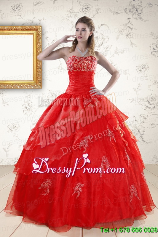 Neckline : StraplessShown Color : RedSilhouette : Ball GownsSleeve Length : sleevelessHemline : floor lengthBack Detail : Lace upFabric : OrganzaEmbellishment : Beading,AppliquesOccasion : Military Ball,Sweet 16,QuinceaneraSeason : Spring,Summer,Fall,Winter