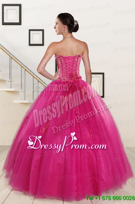 Neckline : StraplessShown Color : FuchsiaSilhouette : Ball GownsSleeve Length : sleevelessHemline : floor lengthBack Detail : Lace upFabric : TulleEmbellishment : Beading,AppliquesOccasion : Military Ball,Sweet 16,QuinceaneraSeason : Spring,Summer,Fall,Winter