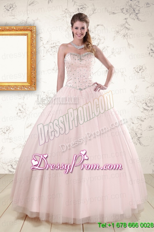 Neckline : SweetheartShown Color : Baby PinkSilhouette : Ball GownsSleeve Length : sleevelessHemline : floor lengthBack Detail : Lace upFabric : Taffeta,TulleEmbellishment : BeadingOccasion : Military Ball,Sweet 16,QuinceaneraSeason : Spring,Summer,Fall,Winter