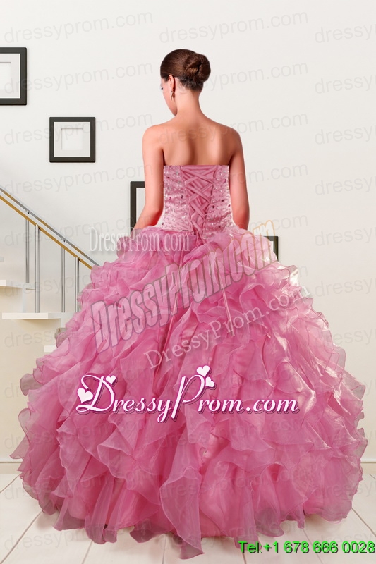 Puffy Sweetheart Pink Quinceanera Dresses with Beading