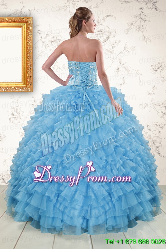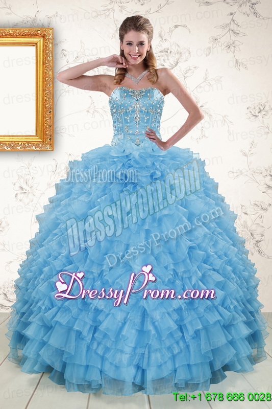 2015 Pretty Sweetheart Baby Blue Sweet 15 Dresses with Beading