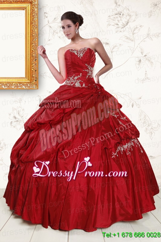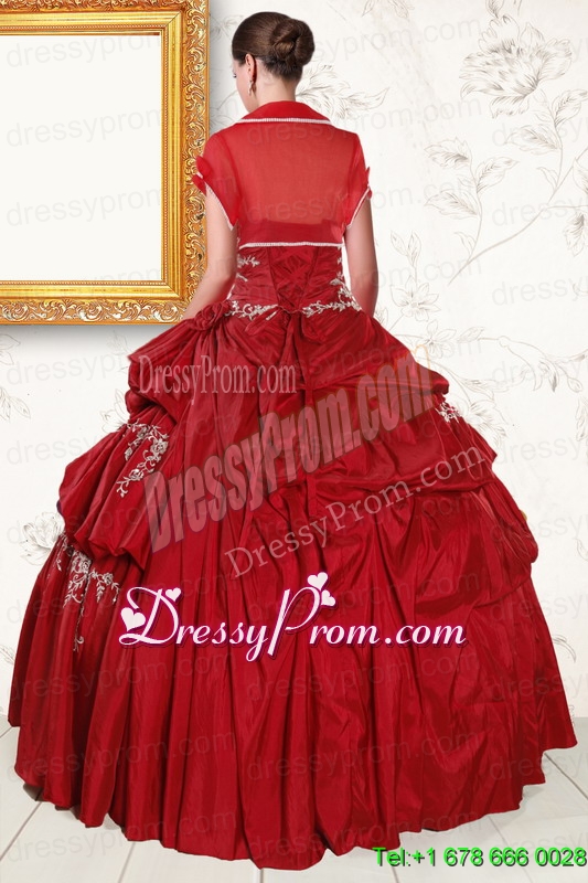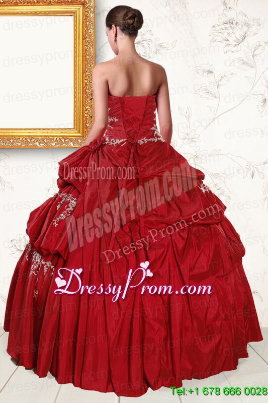 Neckline : SweetheartShown Color : Wine RedSilhouette : Ball GownsSleeve Length : sleevelessHemline : floor lengthBack Detail : Lace upFabric : TaffetaEmbellishment : EmbroideryOccasion : Military Ball,Sweet 16,QuinceaneraSeason : Spring,Summer,Fall,Winter