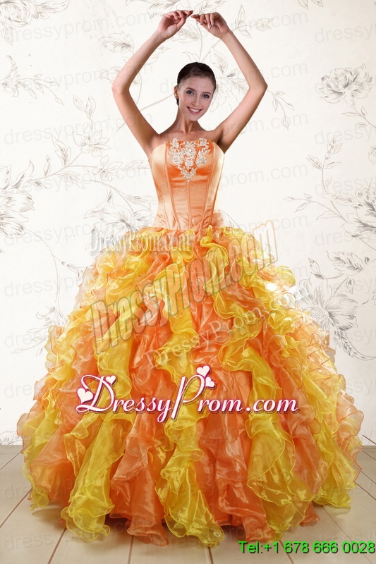 Neckline : StraplessSilhouette : Ball GownsSleeve Length : sleevelessHemline : floor lengthBack Detail : Lace upFabric : OrganzaEmbellishment : Appliques,RufflesOccasion : Military Ball,Sweet 16,QuinceaneraSeason : Spring,Summer,Fall,Winter