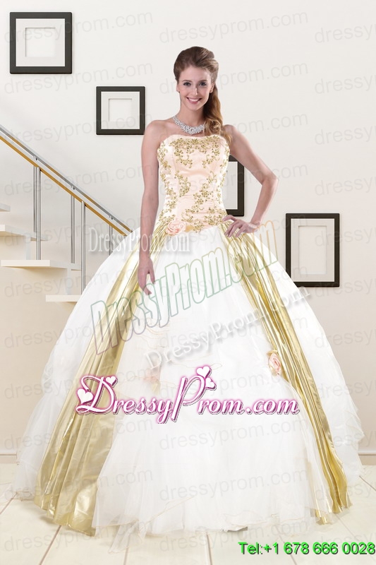 Neckline : StraplessShown Color : WhiteSilhouette : Ball GownsSleeve Length : sleevelessHemline : floor lengthBack Detail : Lace upFabric : OrganzaEmbellishment : AppliquesOccasion : Military Ball,Sweet 16,QuinceaneraSeason : Spring,Summer,Fall,Winter