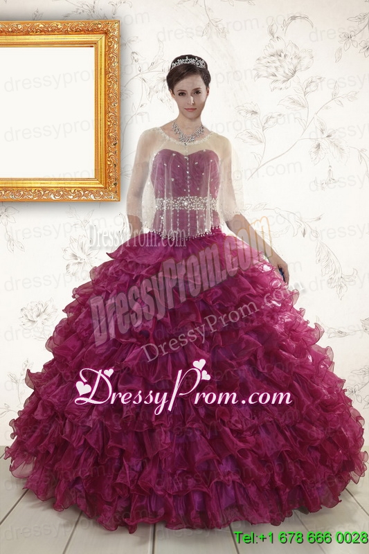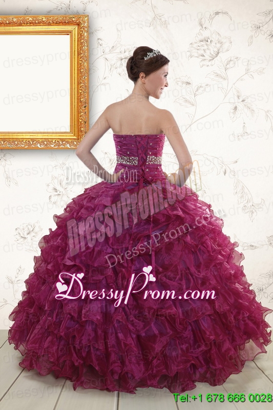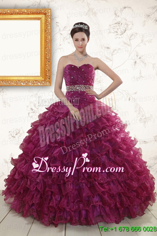 Neckline : SweetheartShown Color : BurgundySleeve Length : sleevelessHemline : floor lengthBack Detail : Lace upFabric : OrganzaEmbellishment : Beading,RufflesOccasion : Military Ball,Sweet 16,QuinceaneraSeason : Spring,Summer,Fall,Winter