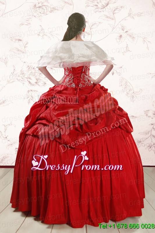 Neckline : SweetheartShown Color : RedSleeve Length : sleevelessHemline : floor lengthBack Detail : Lace upFabric : TaffetaEmbellishment : Beading,Pick UpsOccasion : Military Ball,Sweet 16,QuinceaneraSeason : Spring,Summer,Fall,Winter