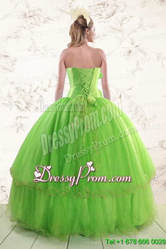 Spring Green 2015 Sweetheart Quinceanera Dresses with Beading and Bowknot