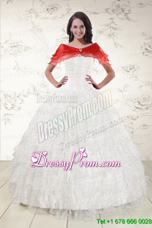Neckline : SweetheartShown Color : WhiteSilhouette : Ball GownsSleeve Length : sleevelessHemline : floor lengthBack Detail : Lace upFabric : Organza,SequinedEmbellishment : RufflesOccasion : Military Ball,Sweet 16,QuinceaneraSeason : Spring,Summer,Fall,Winter
