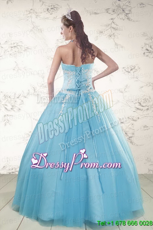 Neckline : SweetheartShown Color : Aqua BlueSilhouette : Ball GownsSleeve Length : sleevelessHemline : floor lengthBack Detail : Lace upFabric : TulleEmbellishment : Beading,AppliquesOccasion : Military Ball,Sweet 16,QuinceaneraSeason : Spring,Summer,Fall,Winter