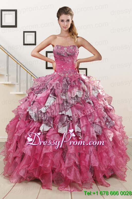 Neckline : StraplessShown Color : Hot PinkSilhouette : Ball GownsSleeve Length : sleevelessHemline : floor lengthBack Detail : Lace upFabric : Organza,Fabric With Rolling FlowersEmbellishment : Beading,RufflesOccasion : Military Ball,Sweet 16,QuinceaneraSeason : Spring,Summer,Fall,Winter