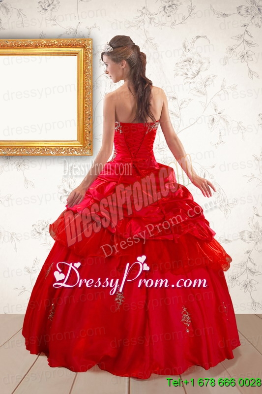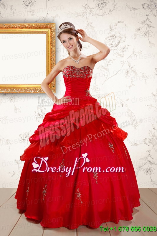 Neckline : SweetheartShown Color : RedSilhouette : Ball GownsSleeve Length : sleevelessHemline : floor lengthBack Detail : Lace upFabric : Organza,TaffetaEmbellishment : Beading,AppliquesOccasion : Military Ball,Sweet 16,QuinceaneraSeason : Spring,Summer,Fall,Winter