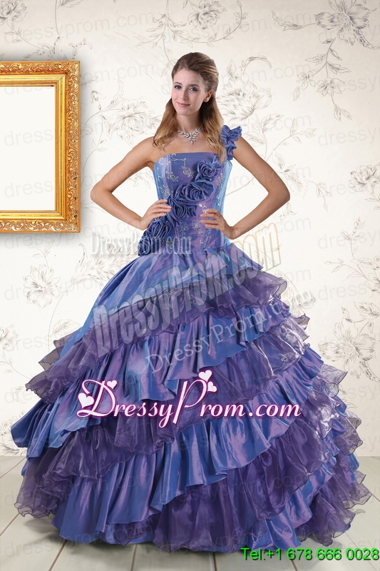 Neckline : One shoulderShown Color : PurpleSilhouette : Ball GownsSleeve Length : sleevelessHemline : floor lengthBack Detail : Lace upFabric : Organza,TaffetaEmbellishment : Ruffles,Hand Made FlowerOccasion : Military Ball,Sweet 16,QuinceaneraSeason : Spring,Summer,Fall,Winter