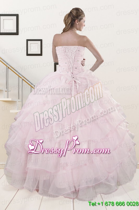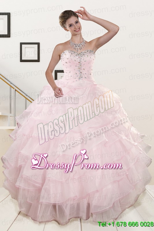 2015 Cute Baby Pink Quinceanera Dresses with Beading and Ruffles