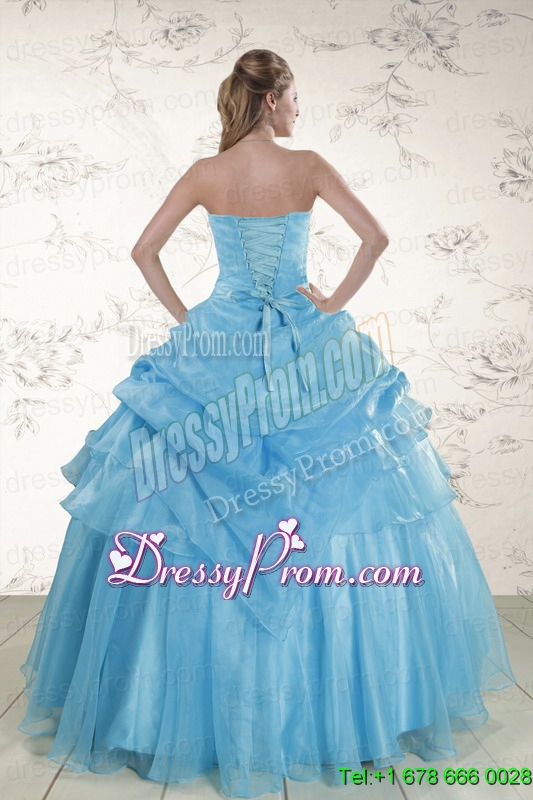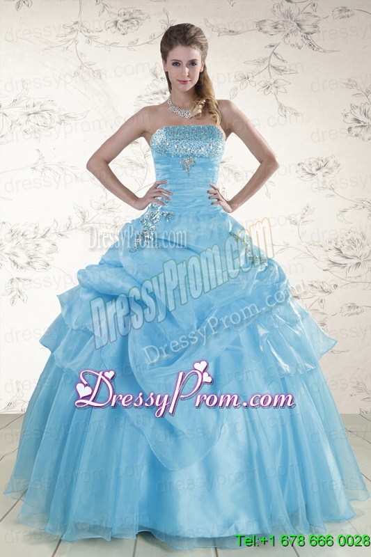 Pretty Aqua Blue 2015 Strapless Quinceanera Dresses with Beading