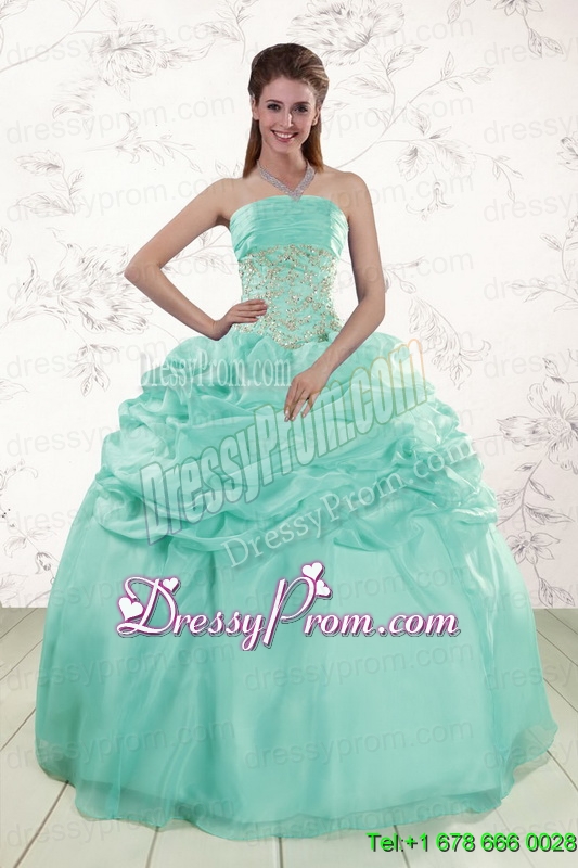 Neckline : StraplessShown Color : Apple GreenSilhouette : Ball GownsSleeve Length : sleevelessHemline : floor lengthBack Detail : Lace upFabric : OrganzaEmbellishment : Beading,Pick UpsOccasion : Military Ball,Sweet 16,QuinceaneraSeason : Spring,Summer,Fall,Winter