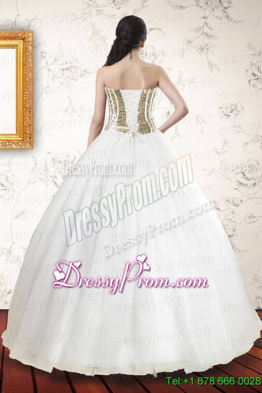 Neckline : StraplessShown Color : WhiteSilhouette : Ball GownsSleeve Length : sleevelessHemline : floor lengthBack Detail : Lace upFabric : TulleEmbellishment : SequinsOccasion : Military Ball,Sweet 16,QuinceaneraSeason : Spring,Summer,Fall,Winter