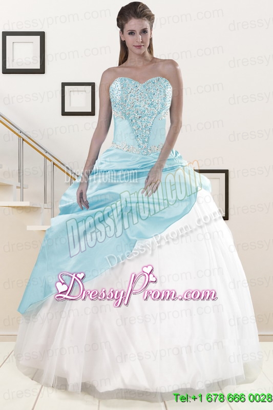 Neckline : SweetheartShown Color : Aqua BlueSilhouette : Ball GownsSleeve Length : sleevelessHemline : floor lengthBack Detail : Lace upFabric : OrganzaEmbellishment : Beading,Pick UpsOccasion : Military Ball,Sweet 16,QuinceaneraSeason : Spring,Summer,Fall,Winter