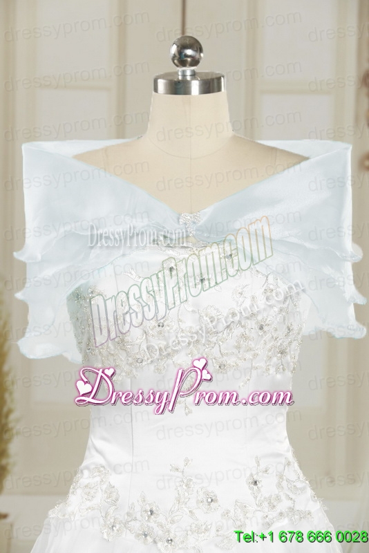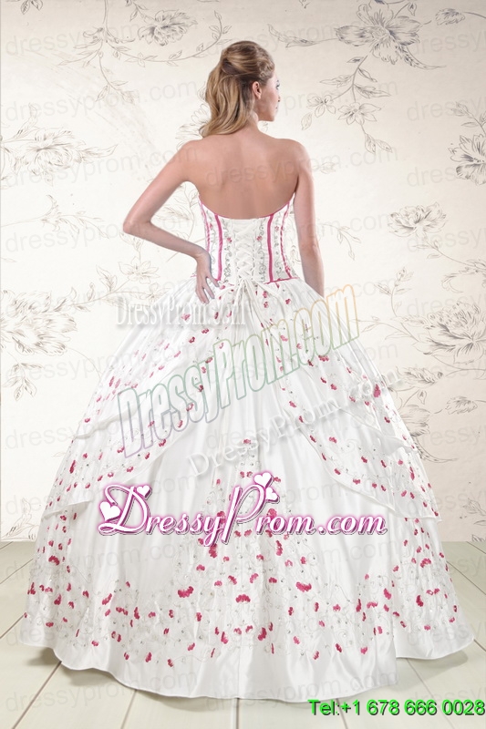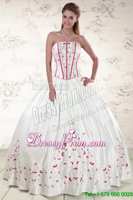 Neckline : StraplessShown Color : WhiteSilhouette : Ball GownsSleeve Length : sleevelessHemline : floor lengthBack Detail : Lace upFabric : TaffetaEmbellishment : AppliquesOccasion : Military Ball,Sweet 16,QuinceaneraSeason : Spring,Summer,Fall,Winter
