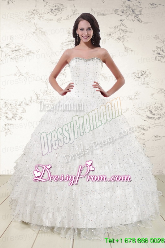 Neckline : SweetheartShown Color : WhiteSilhouette : Ball GownsSleeve Length : sleevelessHemline : floor lengthBack Detail : Lace upFabric : Organza,SequinedEmbellishment : RufflesOccasion : Military Ball,Sweet 16,QuinceaneraSeason : Spring,Summer,Fall,Winter
