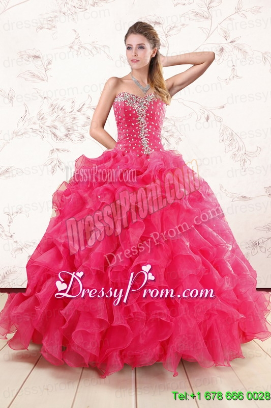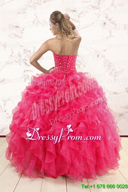 Stylish Beading and Ruffles Sweet 15 Dresses in Hot Pink