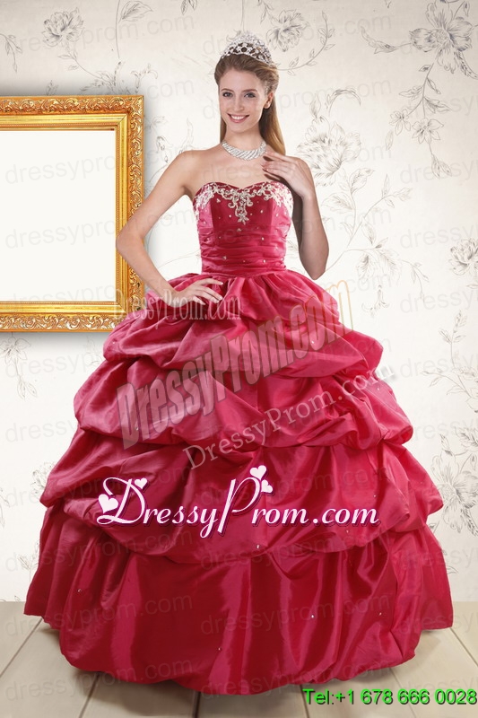 Neckline : SweetheartShown Color : Hot PinkSilhouette : Ball GownsSleeve Length : sleevelessHemline : floor lengthBack Detail : Lace upFabric : TaffetaEmbellishment : Appliques,Pick UpsOccasion : Military Ball,Sweet 16,QuinceaneraSeason : Spring,Summer,Fall,Winter