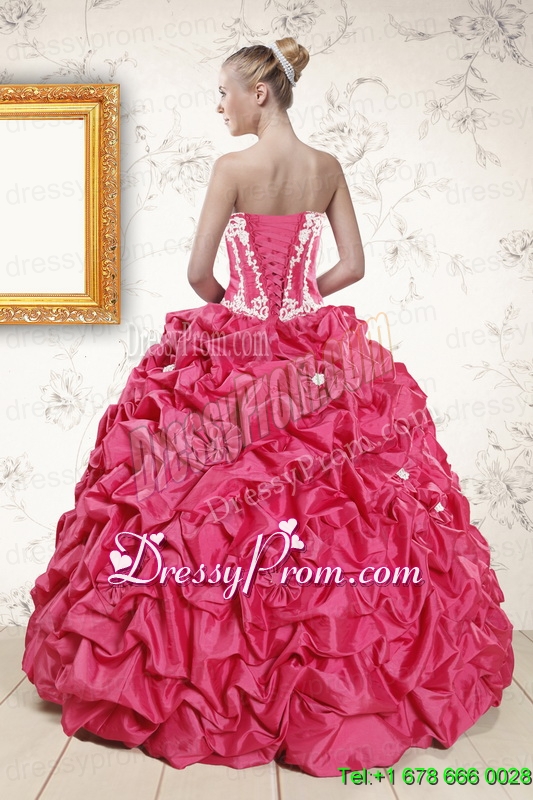 Neckline : SweetheartShown Color : Hot PinkSilhouette : Ball GownsSleeve Length : sleevelessHemline : floor lengthBack Detail : Lace upFabric : TaffetaEmbellishment : Appliques,Pick UpsOccasion : Military Ball,Sweet 16,QuinceaneraSeason : Spring,Summer,Fall,Winter
