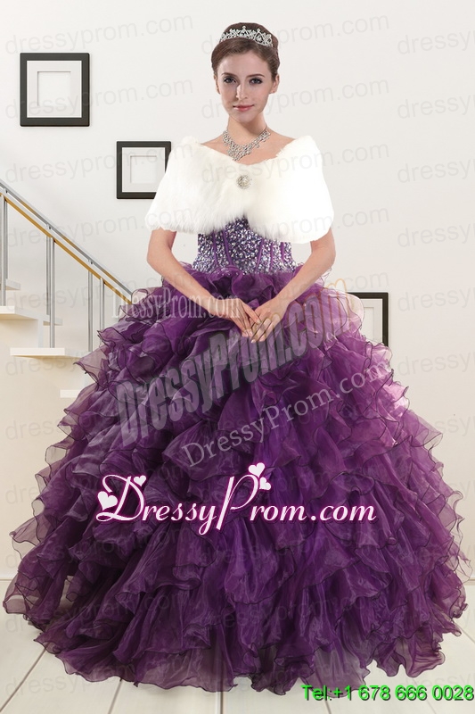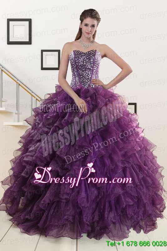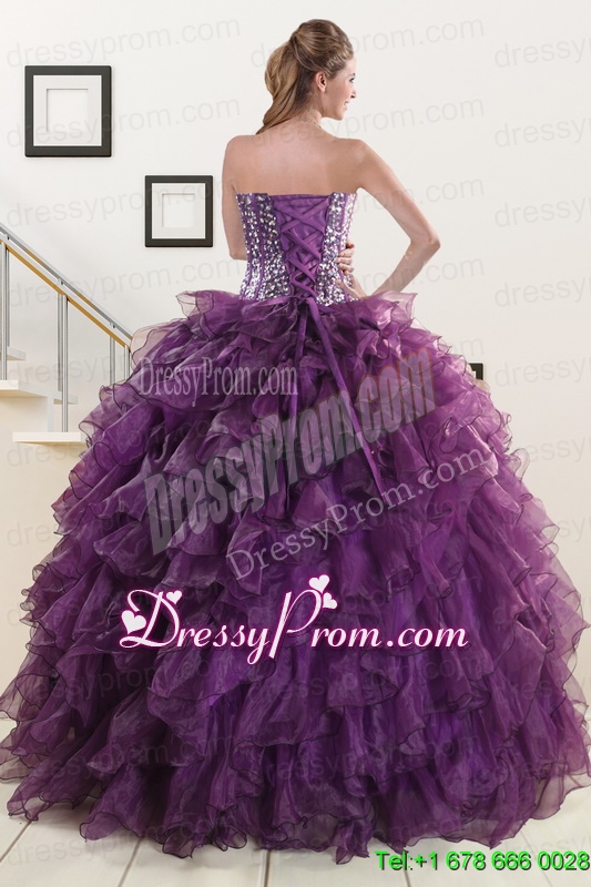 2015 Traditional Purple Quinceanera Dresses with Beading and Ruffles