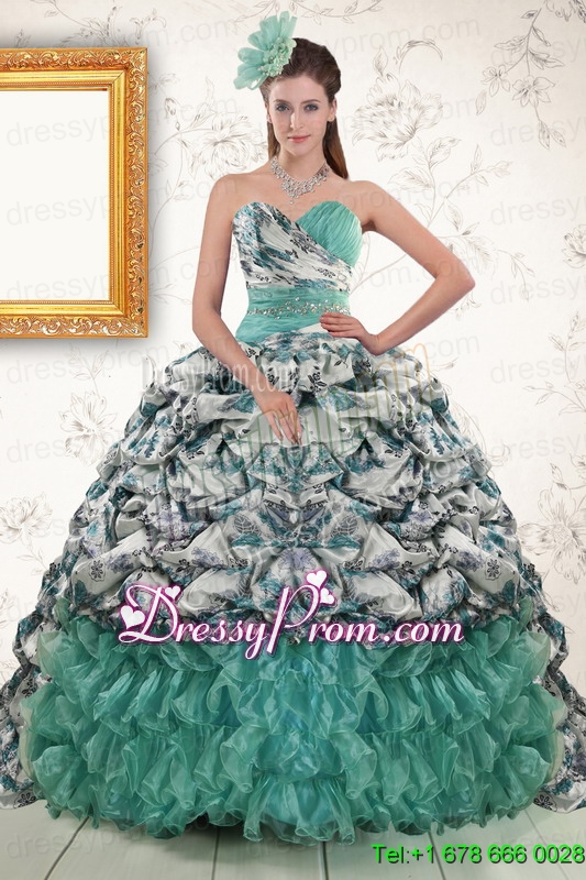 Neckline : SweetheartShown Color : TurquoiseSilhouette : Ball GownsSleeve Length : sleevelessHemline : floor lengthBack Detail : Lace upFabric : Organza,Fabric With Rolling FlowersEmbellishment : Beading,Pick UpsOccasion : Military Ball,Sweet 16,QuinceaneraSeason : Spring,Summer,Fall,Winter