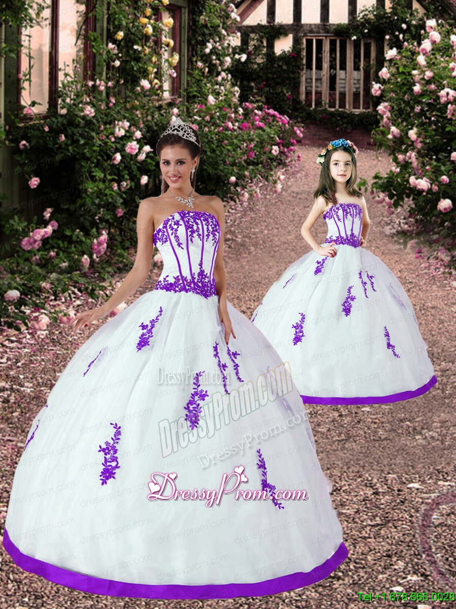 Neckline : StraplessShown Color : White,Eggplant PurpleSilhouette : Ball GownsSleeve Length : sleevelessHemline : floor lengthBack Detail : Lace upFabric : Satin,OrganzaEmbellishment : AppliquesOccasion : Prom,Formal Evening,Graduation,Military Ball,Sweet 16,QuinceaneraSeason : Spring,Summer,Fall,Winter