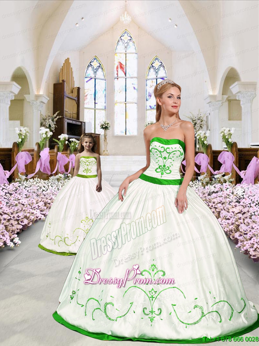 Beautiful Embroidery White and Spring Green Princesita Dress for 2015 Spring