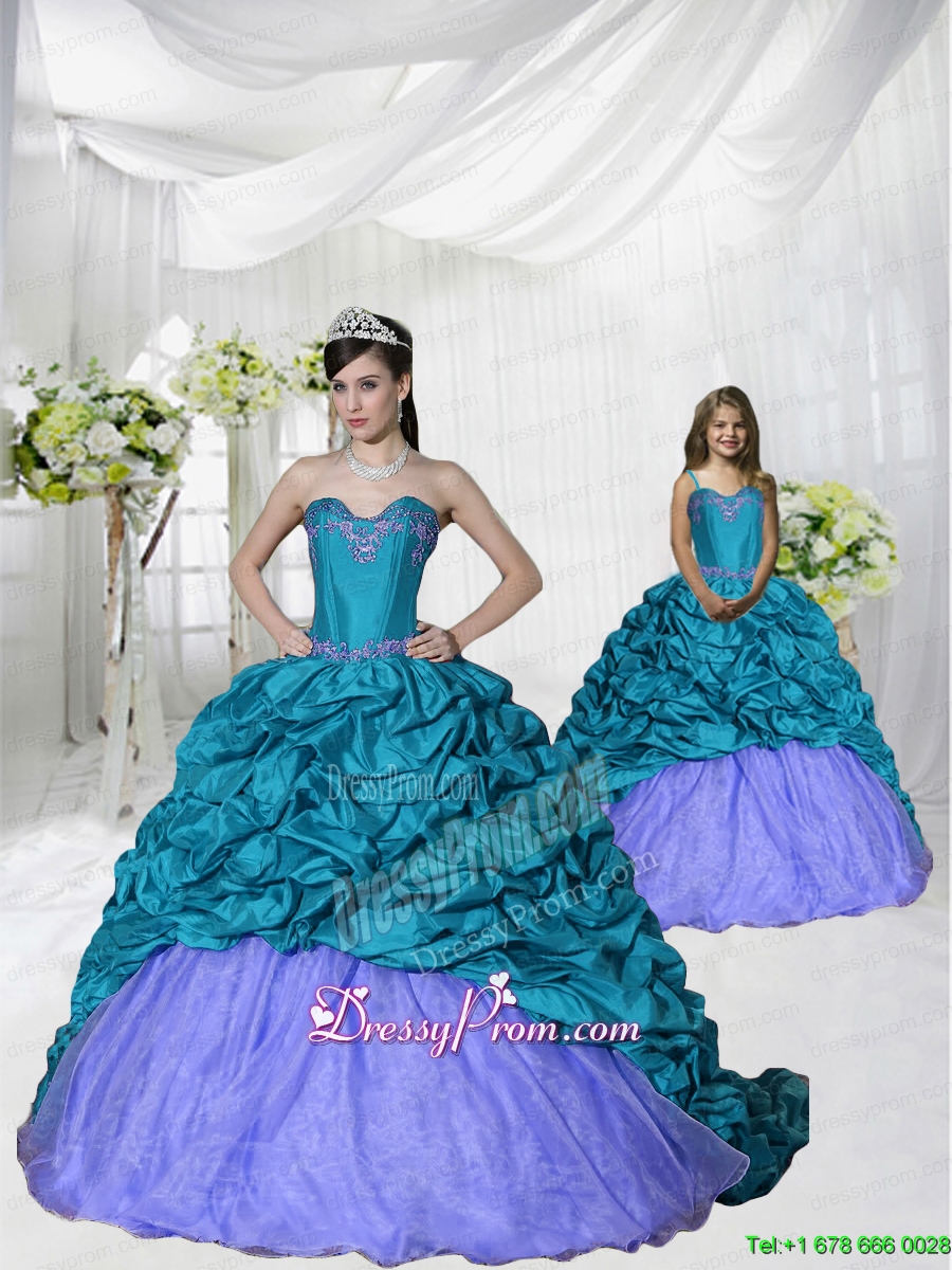 New Style Appliques Brush Train Blue and Purple Princesita Dress