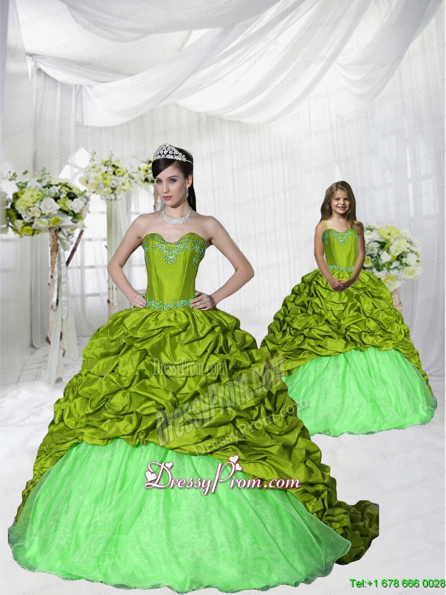 Most Popular Brush Train Olive Green Princesita Dress with Appliques and Pick Ups