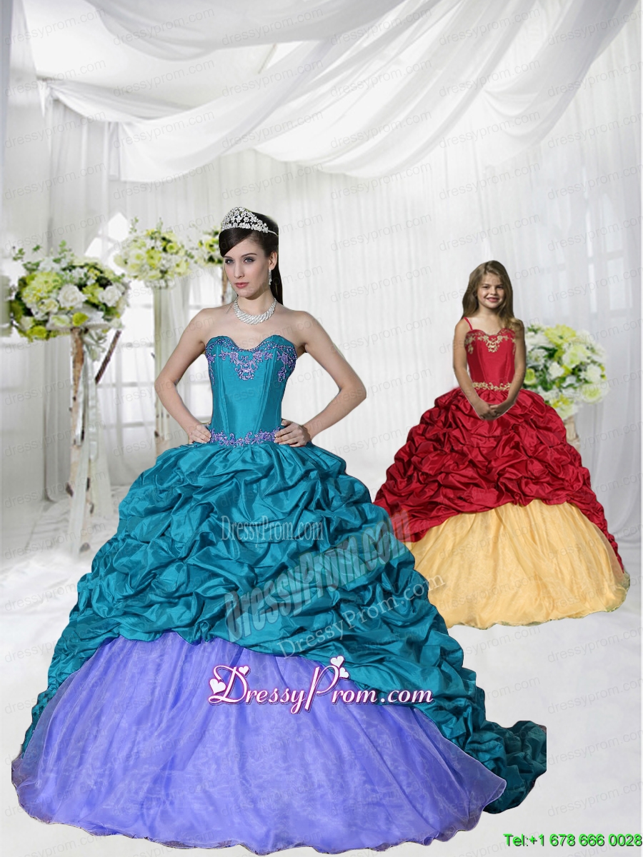 Neckline : SweetheartShown Color : Multi-colorSilhouette : Ball GownsSleeve Length : sleevelessHemline : with trainBack Detail : Lace upFabric : Organza,TaffetaEmbellishment : Beading,Appliques,Pick UpsOccasion : Military Ball,Sweet 16,QuinceaneraSeason : Spring,Summer,Fall,Winter