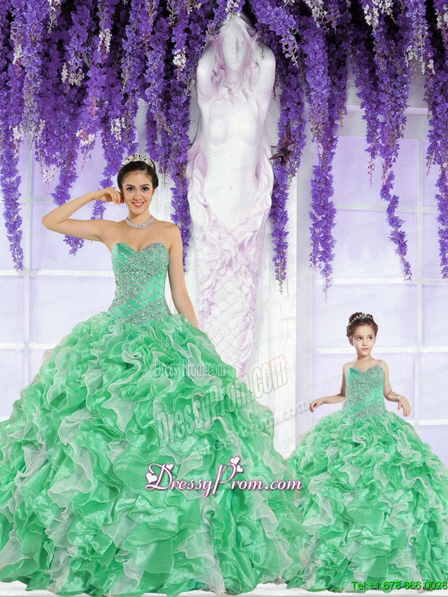 2015 Spring Hot Sales Beading and Ruffles Green Princesita Dress