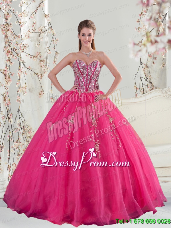 Neckline : SweetheartShown Color : Hot PinkSilhouette : Ball GownsSleeve Length : sleevelessHemline : floor lengthBack Detail : Lace upFabric : OrganzaEmbellishment : Appliques,SequinsOccasion : Graduation,Military Ball,Sweet 16,QuinceaneraSeason : Spring,Summer,Fall,Winter