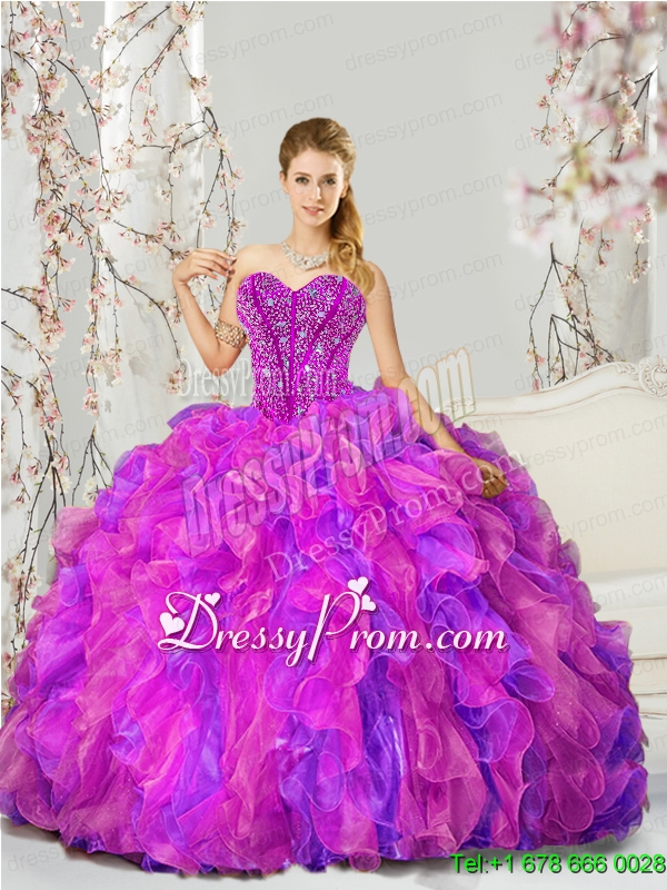 2015 Detachable and Custom Made Fuchsia and Lavender Quince Dresses with Beading and Ruffles