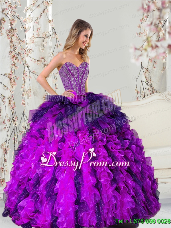 Detachable and Custom Made Multi Color Sweet 16 Dresses with Beading and Ruffles for 2015