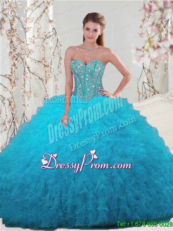 Neckline : SweetheartShown Color : TurquoiseSilhouette : Ball GownsSleeve Length : sleevelessHemline : floor lengthBack Detail : Lace upFabric : OrganzaEmbellishment : Beading,RufflesOccasion : Military Ball,Sweet 16,QuinceaneraSeason : Spring,Summer,Fall,Winter
