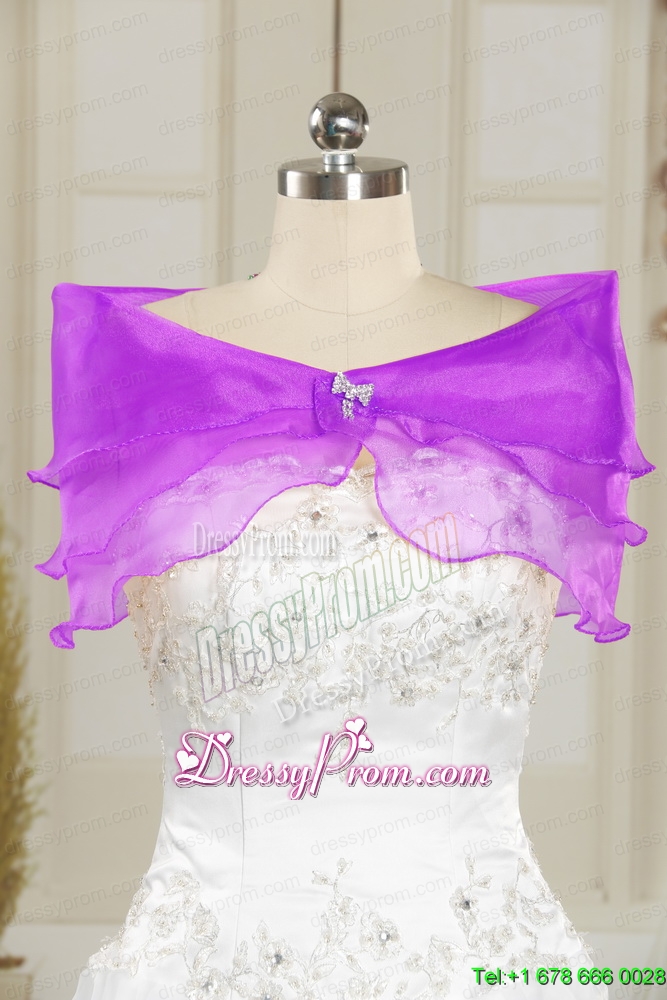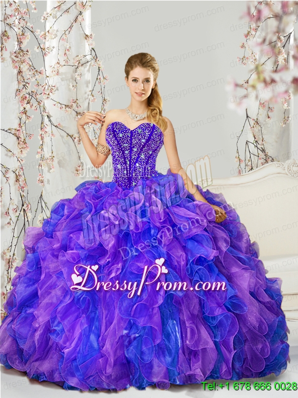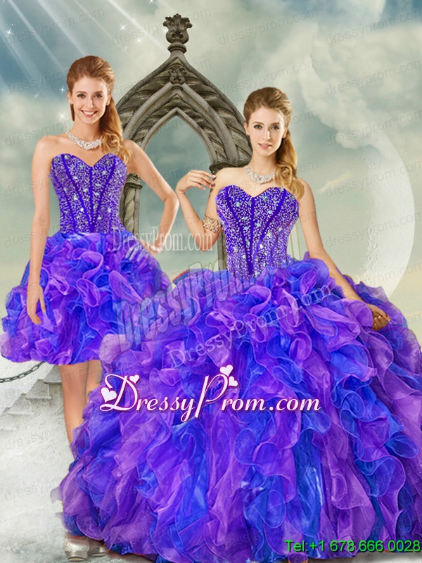 Detachable and Elegant Beading and Ruffles Quince Dresses in Purple and Blue for 2015