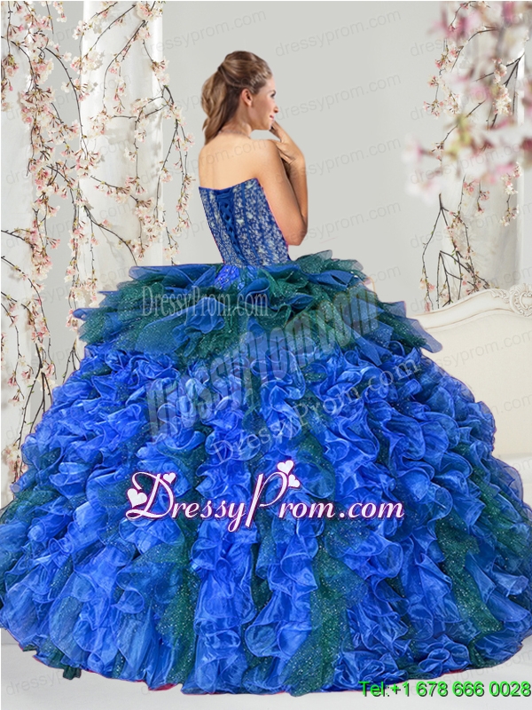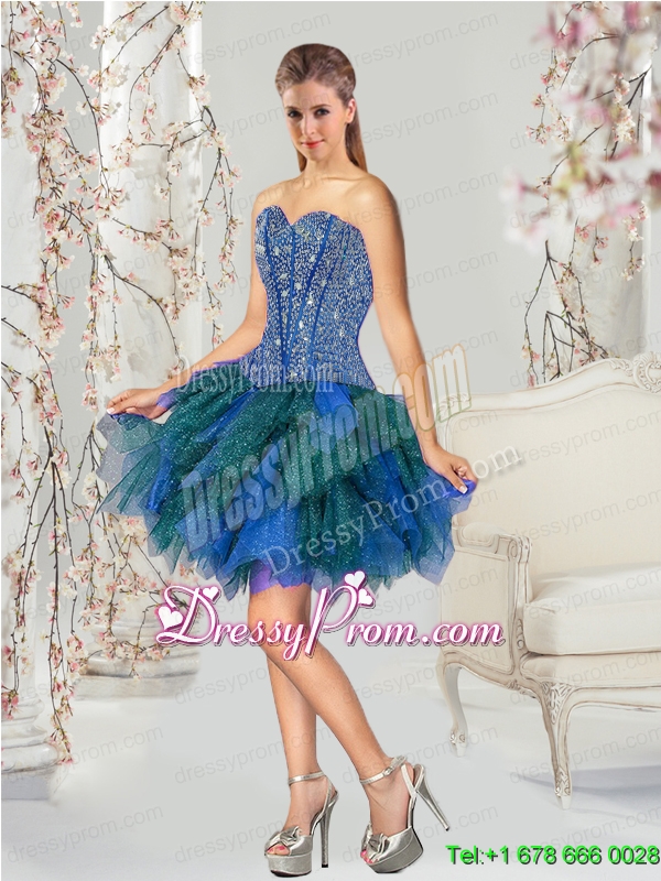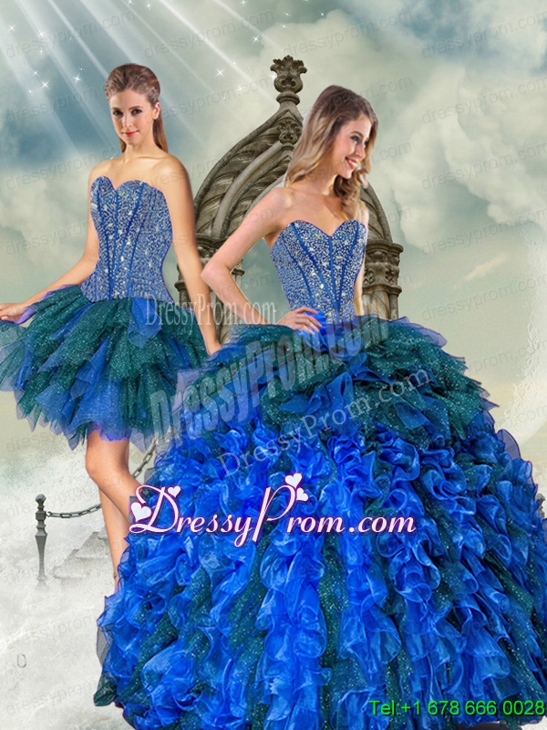 2015 Detachable and Exclusive Beading and Ruffles Quince Dresses in Royal Blue and Teal