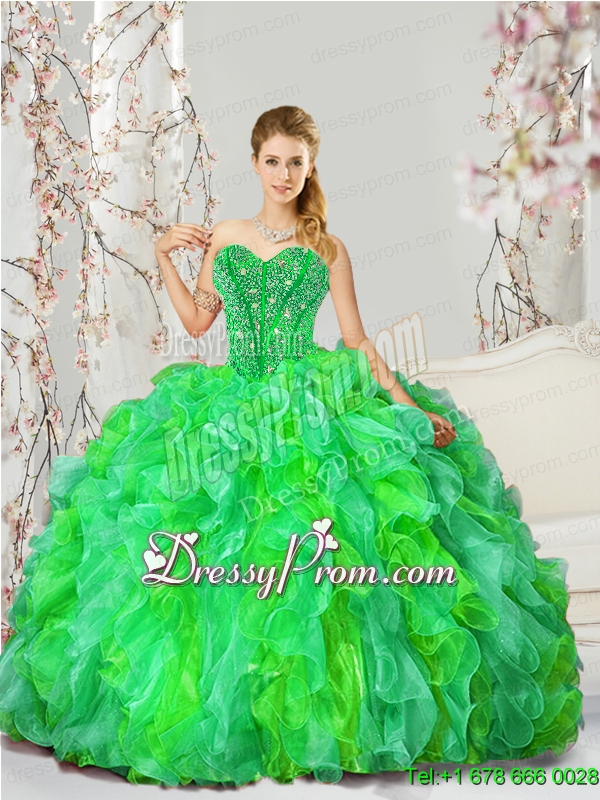 Neckline : SweetheartSleeve Length : sleevelessHemline : floor lengthBack Detail : Lace upFabric : OrganzaEmbellishment : Beading,RufflesOccasion : Military Ball,Sweet 16,QuinceaneraSeason : Spring,Summer,Fall,Winter
